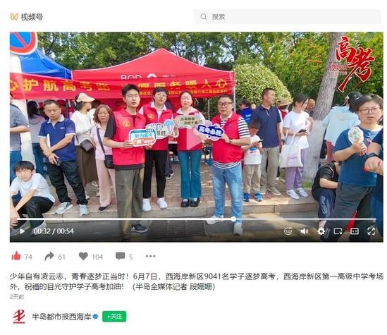 6月7日至10日,水電一局四公司聯合青島市長江路街道峨眉山路社區開展了高考志愿服務活動。在考點青島市西海岸新區第一高級中學設立“愛心高考服務站”,精心搭建遮陽棚、擺放桌椅,志愿者為考生、候考家長及交警等提供礦泉水、能量飲料、防暑藥品等貼心服務,踐行央企責任,助力高考圓夢。
