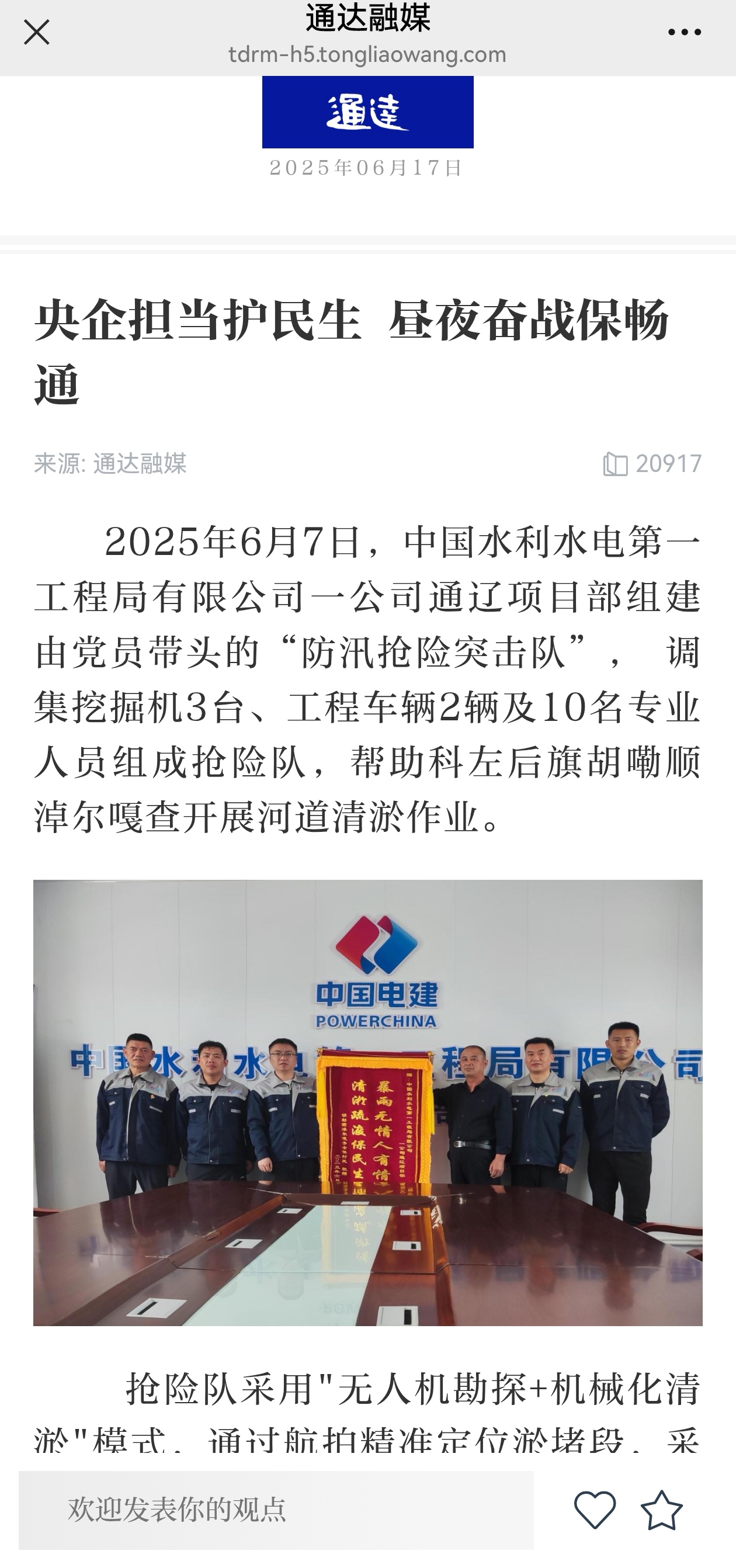近日,水電一局通遼項目部收到胡勒順淖爾嘎查村民送來的“暴雨無情人有情 清淤疏浚保民生”錦旗一面,對公司大國央企擔當表示感謝。 6月7日,水電一局通遼項目部接到胡嘞順淖爾嘎查黨支部緊急求助:因河道長期淤積,我村面臨雨季排水癱瘓風險,直接威脅200余戶村民生命財產安全及耕地2.5萬畝。收到緊急求助后,項目部立即召開部署會,組建由黨員帶頭的“防汛搶險突擊隊”,立即啟動應急預案,調集挖掘機3臺、工程車輛2輛及10名專業人員組成搶險隊,于當日抵達現場展開清淤作業。 搶險隊采用"無人機勘探+機械化清淤"模式,通過航拍精準定位淤堵段,采用分層開挖、淤泥外運等工藝,累計清理河道8公里,疏浚土方量達8.9萬m3。施工期間同步修復護岸3處,增設臨時導流渠2條,實現“清淤—疏通—防護”全流程閉環處置。 突擊隊隊長安旭鵬帶領操作手們實行“人歇機不歇”的輪班制,挖掘機手李兆亮為搶進度連續操作8小時。期間突遇局部塌方,技術組組長李萌帶領3名隊員跳入河道人工清障,用沙袋筑起臨時圍堰,確保機械作業不受影響。 經過連續五個晝夜奮戰,全面完成了搶險任務。后續將將持續關注河道情況,確保河道的暢通無阻,為胡勒順淖爾嘎查的村民構筑了一道堅固的安全屏障。嘎查黨支部書記表示:“清淤后河道過流能力提升300%,解除了我們最大的心頭之患。” 此次行動彰顯了水電一局“災情就是命令”的央企擔當,未來在做好項目高質量建設工作的同時,積極踐行央企責任,服務民生保障,傳遞溫暖與希望。 https://tdrm-h5.tongliaowang.com/contentDetailMobile?id=134686 |