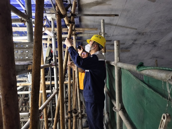 導流洞進口漸變段作為項目的關鍵節點,施工難度和技術要求極高。該段結構設計獨特,采用橢圓線結構表面,最大斷面高度達19.65米,最小斷面高度為15.40米,使用特制異形模板進行拼模,對混凝土澆筑工藝和質量控制提出了嚴苛的挑戰。為確保澆筑工作的順利進行,項目部質量管理團隊34小時輪班緊盯作業面現場,安全和技術人員時刻關注澆筑過程中的模體形態及安全風險點。從備倉階段的模板拼模、澆筑過程的實時監控到后期的養護管理,每一個環節都力求精益求精,及時調整施工參數,確保了澆筑質量的穩定性。